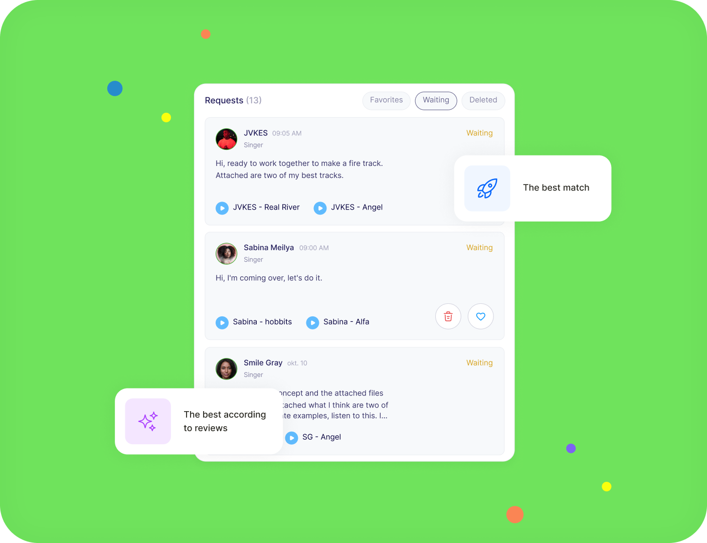 We increase your revenue by enabling your writers to be more creative and collaborative. Prevent your clients from using external sample or beat platforms and instead, use the existing network of signed talent to collaborate with - quick and easy. This keeps publishing royalties in the family.